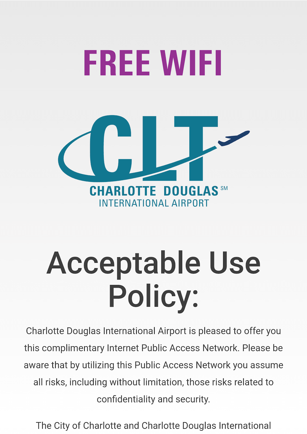 - Accept the terms of usage and you will be connected to the Charlotte Airport Wi-Fi network.