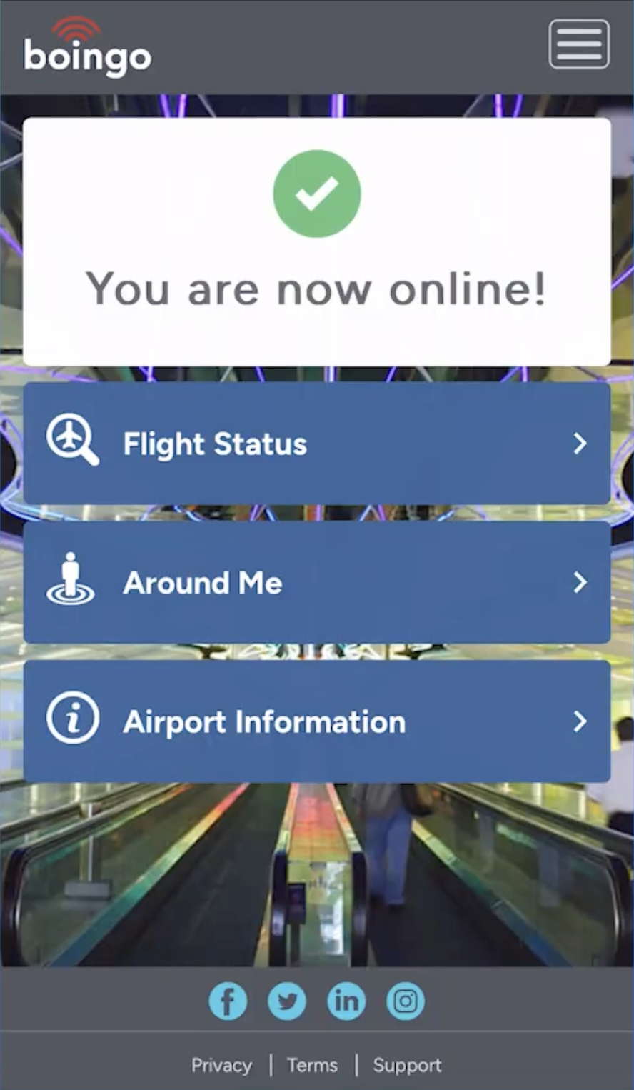 - Select the “Fast, Free Wi-Fi from Boingo” option and watch an ad to get online.